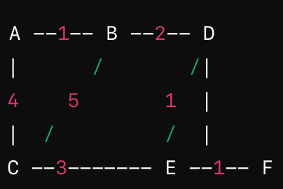 Chương trình này sẽ in ra đường đi ngắn nhất từ điểm bắt đầu 'A' đến điểm kết thúc 'F'.